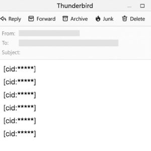 ある日Thunderbirdでメールを確認していたところ、本文中に「[cid:*****]」という謎の文字列がずらっと並んでいました。