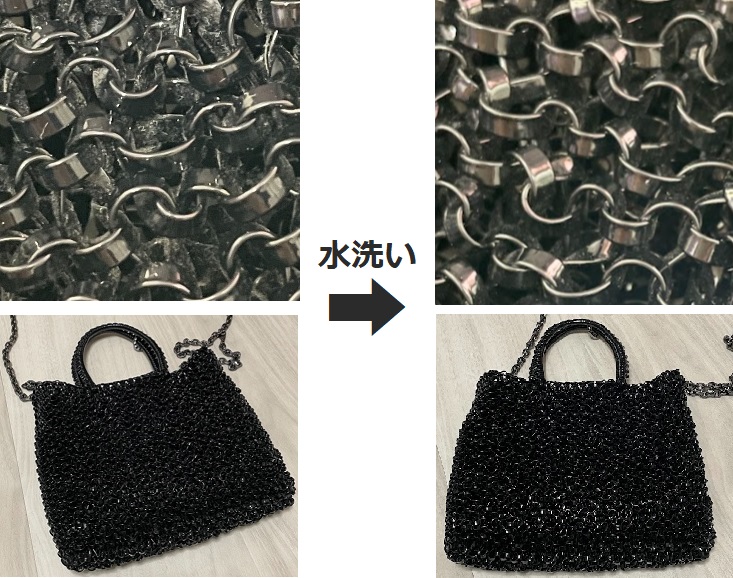 特に黒いバッグだと目立ちやすく、どうやって落とせばいいのか悩みますよね。この記事では、実際に水洗いしてみた方法と、洗った後の仕上がりを写真付きでご紹介します。ワイヤーバッグのお手入れに悩んでいる方は、ぜひ参考にしてみてください。